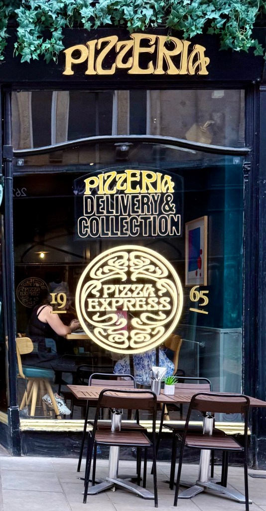 Lincoln has a large cathedral in the center of town on the top of a hill, Steep Hill, with a Roman Fort beside it. It is a tourist town just like Asheville and Marshall and Celle in Germany where I was a couple of months ago. The streets were crowded with people. It turned out also to be Gay Pride day so there were children wearing multi colored capes and a celebration going on in one of the restaurants. We went to a shop that Tina had showed us the day before with beautiful objects for sale and I bought a couple of Danish boxed mobiles for my new apartment. And then we walked down Steep Hill, stopping in at thrift stores and having lunch at the Wig and Mitre. I had Lancashire sausages and mashed potatoes and gravy and some delicious greens. When we got to the bottom of the hill we stopped in at Stokes Highbridge Cafe spanning the little river Witham for a scone with clotted cream and hot chocolate with piled up cream powdered with chocolate. And then we called Tina and were driven home and talked some more.