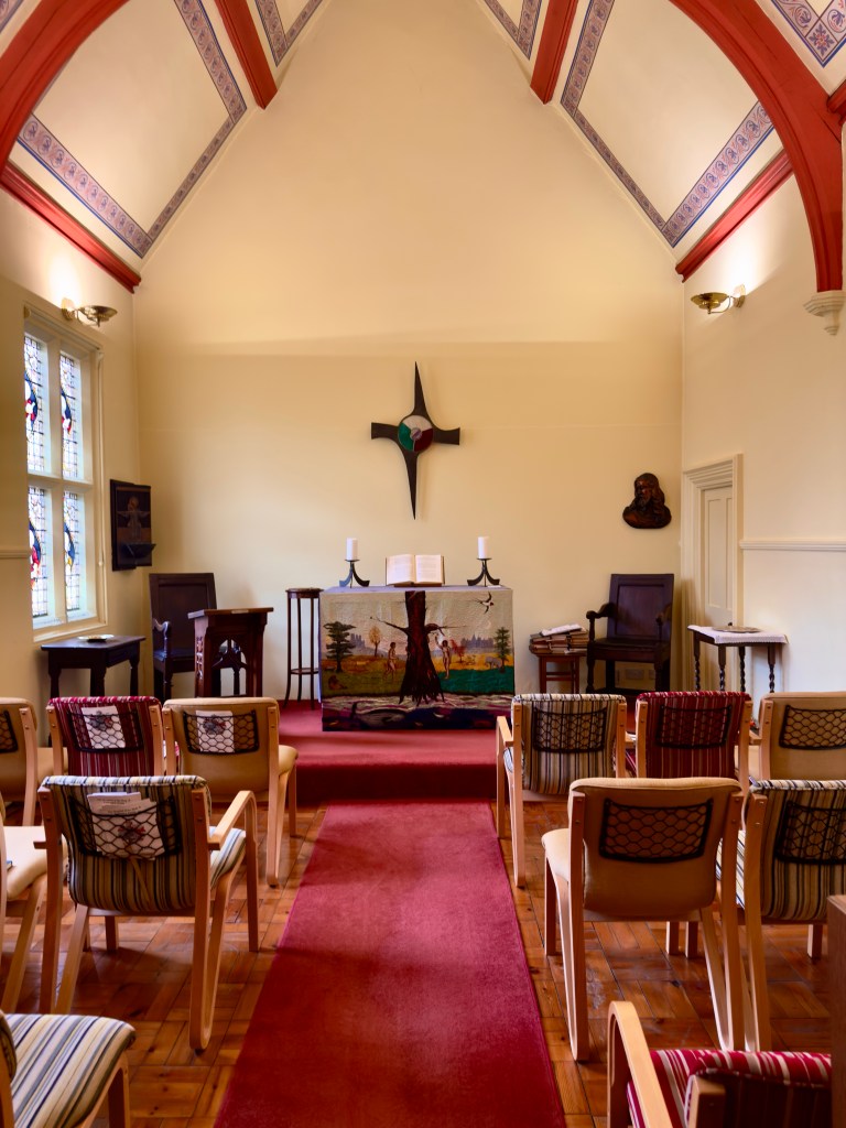I had a wonderful hour with Dick Lewis who was as pleasant and affable and fun to be with as a long lost brother. He showed me the whole place and the story of it’s founding. An extremely wealthy family, the Darnells lived in Retford where they intermarried with the Denman family, another rich and powerful family. In the 1500’s there were six boys in the Darnell family with the sixth boy certain never to inherit anything, because the family lands and inheritance would go to the eldest son. But the Black Plague swept Europe and of the 160 people living in Retford 60 died including the five older brothers. The sixth, who never married and had no heirs, was so grateful to still be alive that in his will he set up a trust to house 15 indigent, single, older men, a trust which has continued to this day, with 15 Retford men living in small apartments with a beautiful glassed in common room and a feast hall with stained glass windows and furniture from the 1500’s where the occupants have feasts with huge quantities of beer, some lasting five days, several times a year. The Hospital, emphasizing hospitality, is surrounded by wide lawns and a beautiful garden. Dick Lewis is the Chaplain of the place.