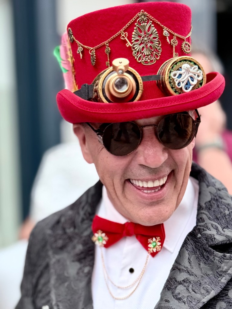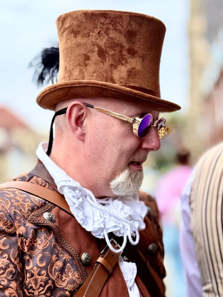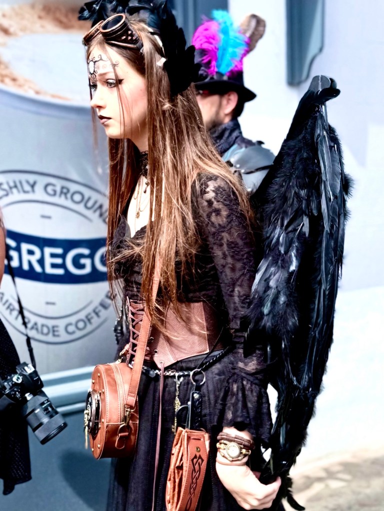 Steam Punk is a mixture of Victorian fashion, the imagination of the new steam powered era and wild creativity. It is celebrated in a number of places in the world, but the biggest celebration of all is in Lincoln, England, with participants coming from all over the UK and Europe for a four day festival. I would have imagined it to be an young person’s blowout, but it wasn’t. Most of the participants in their elaborate costumes were older, even elderly people, and almost everyone was eager to be photographed. So I had a great time photographing people in their costumes which were elaborate and quite expensive, not Halloween costumes at all.