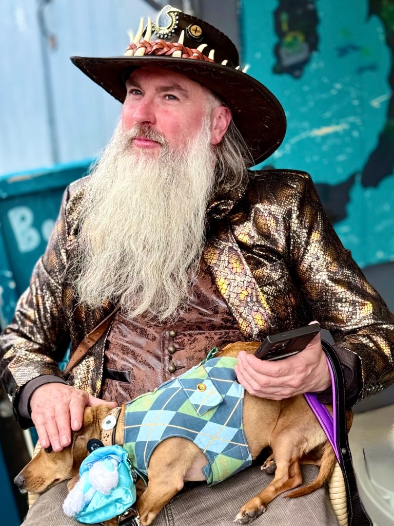 Everyone was having a marvelous time as they strutted their stuff and suddenly I had a flashback to the the huge line of MAGA Trump devotees that I photographed in October waiting to her Trump speak in the Asheville Civic Center. Most of those people in their red white and blue costumes had driven a long way to a number of Trump rallies and enjoyed communing with their fellow Trump worshipers as much as listening to the barely coherent rambling of Trump. Both groups were part of a tribe and were having great fun. These SteamPunk people came every year for the high point of their summer, and were even said to have a different elaborate costume for each day.