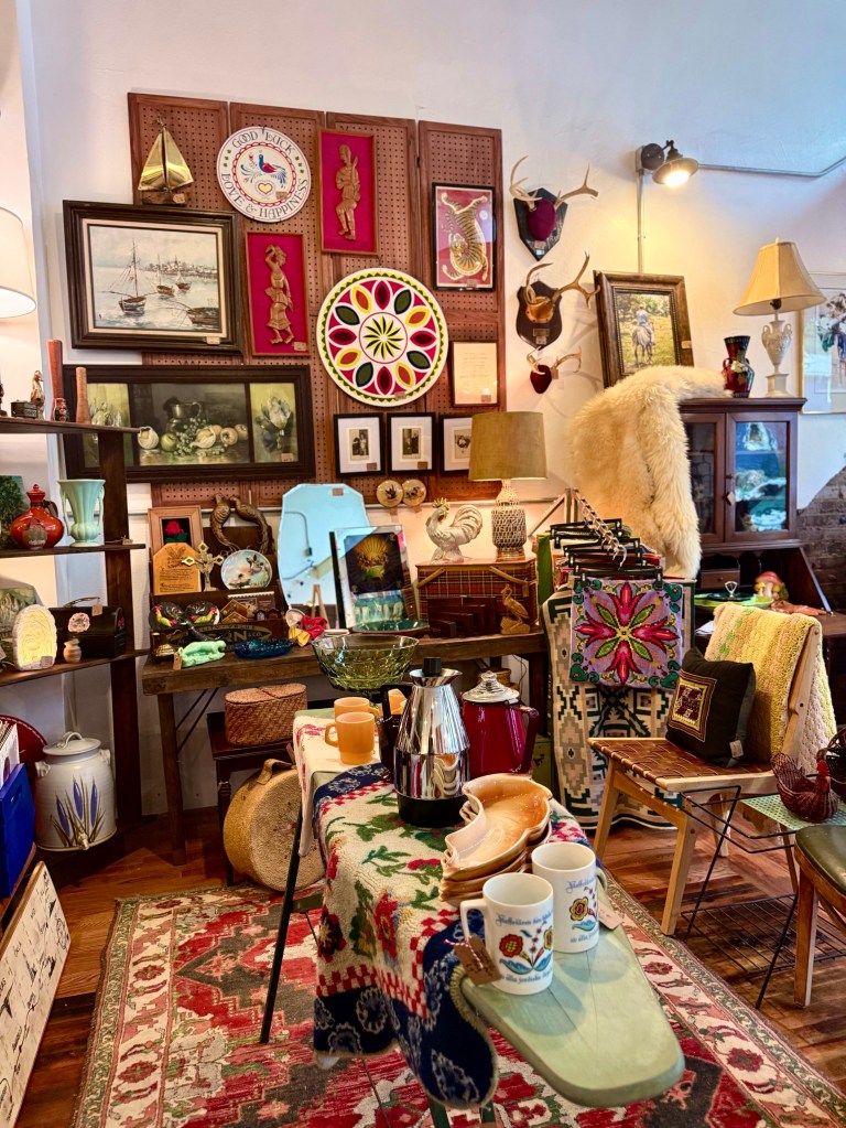 Then there are brand new shops replacing the old. The most attractive to me is the Honey Hole, about ten booths by various venders with all kinds of antiques, the store in which which I found my red acrylic chair.