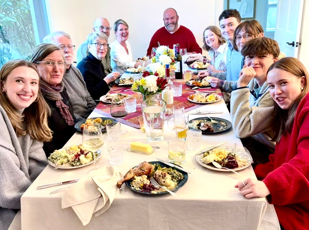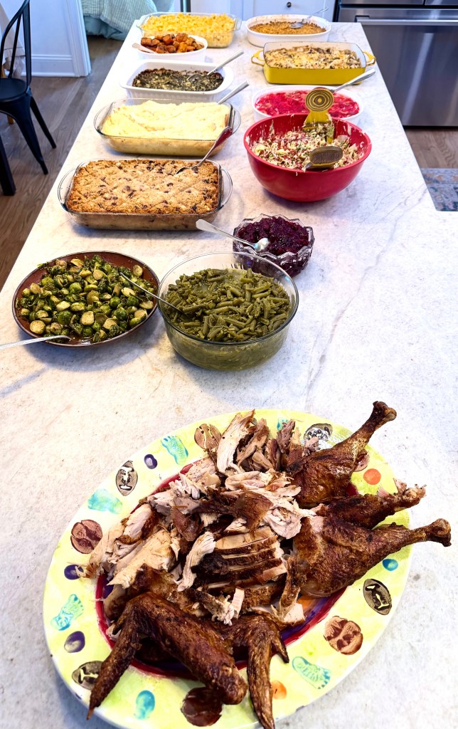 Kathy, Caroline and Hannah had all spent hours cooking the same traditional dishes that had been passed down from Kathy’s mother and grandmother. Tom had fried a turkey in a huge barrel of peanut oil, done far enough from the house not to burn it down if things went awry. We ate and ate and talked and talked and finally settled in the living room with football on the tv but the sound off so we could talk. It was a wonderful evening