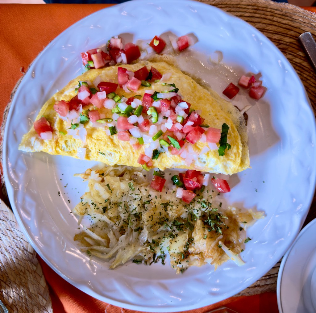 The first thing we did was to go across the street to a small hotel with a bright dining room where we had a sumptuous breakfast. I was so excited by the breakfast and photographing the food that I forgot to photograph the dining room.