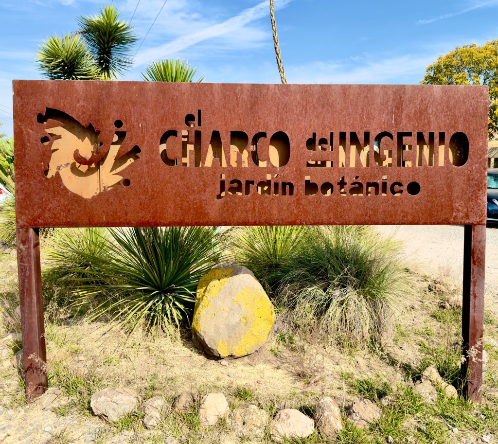 Today the yoga group packed in four taxies and when up, up and up to the ridge above the city limit of San Miguel de Allende. Most people’s idea of a botanical garden is a riot of flowers, enormous ferns and dense foliage. But this botanical garden, that is bone dry desert most of the year, was not that way at all. Instead most of the foliage had thorns and the featured plants were cacti. But it was beautiful nevertheless.