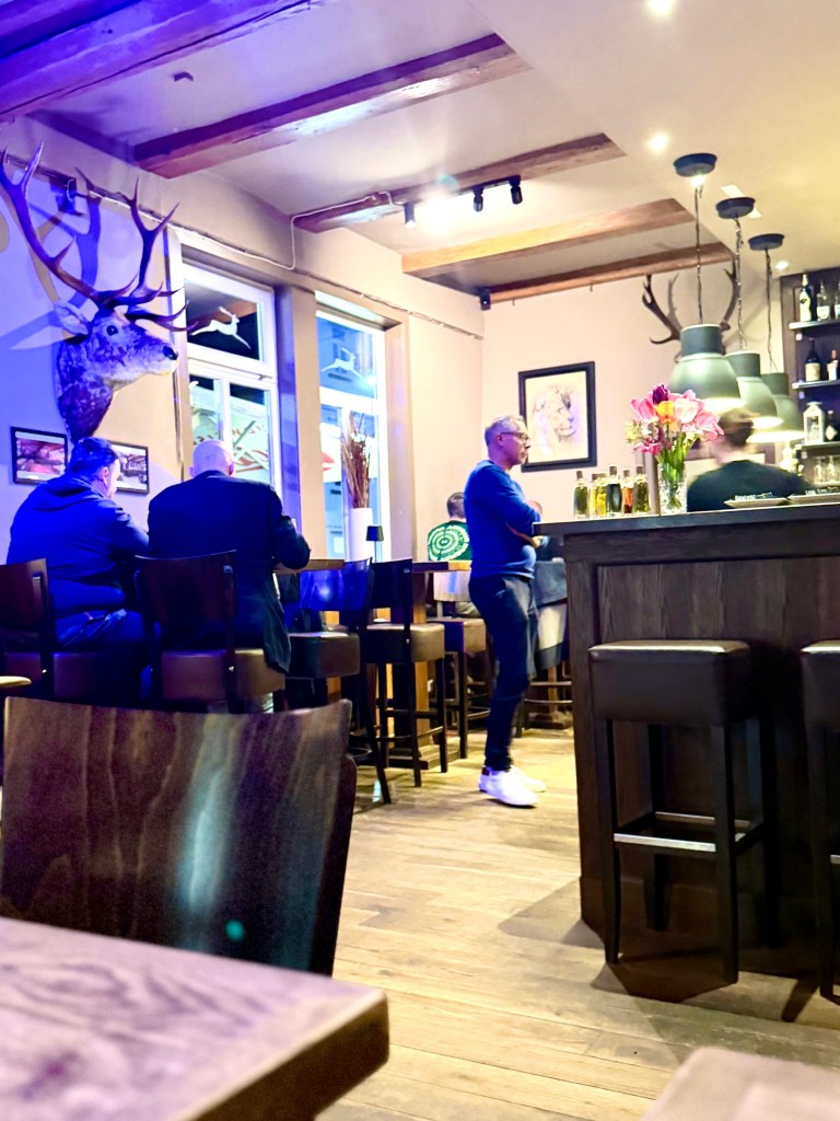 But on the way we decided to eat dinner in the gasthaus Brauner Hirsch (Brown Deer) where my son Tom and his family, along with Kathe and I, stayed on Tom’s family’s first visit to Celle 15 years ago. The restaurant was warm with the chatter of families out for the evening and great fun. And then we drove back to Winsen after another full day.