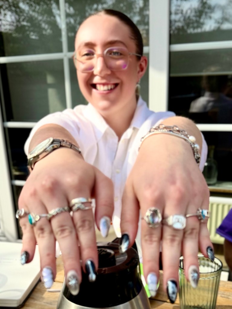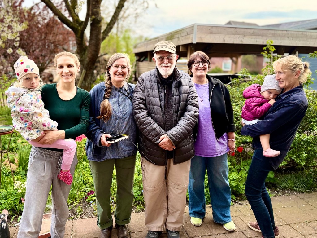 We had apple cake in the garden of the house that Susannah and her daughter Sophia lived in next door to Susannah’s sister who made the cake. Sophia wrote out a family tree so that we would know how everyone was connected. We admired Sophia’s newly painted fingernails and talked about family members, mostly in English since they were more fluent in English than we in German. We toured a barn filled with enormous milk cows and then said goodbye. Susie collected a little dirt from her grandfather Ewald’s home and a nearby stream in her tiny bottles and off we went toward home.